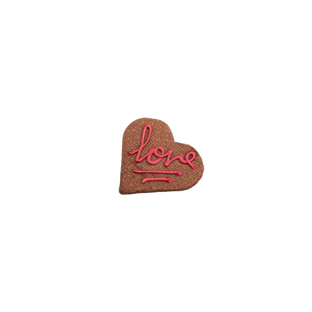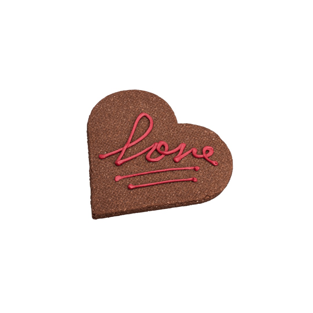 Cuoricino di pasta frolla sablè al cacao effetto tela con dedica.