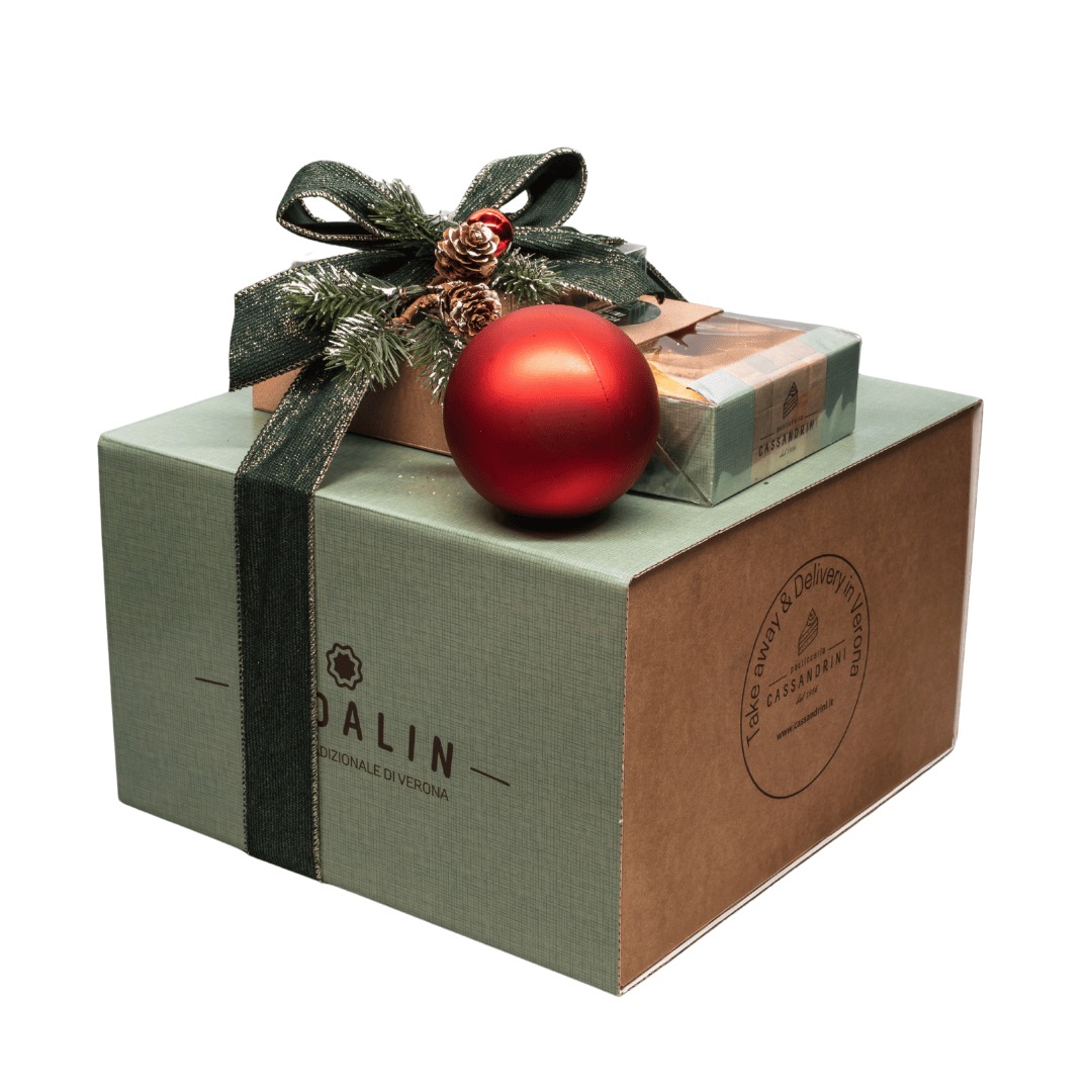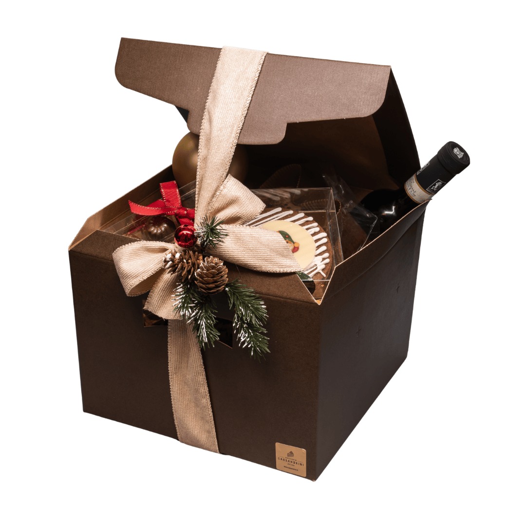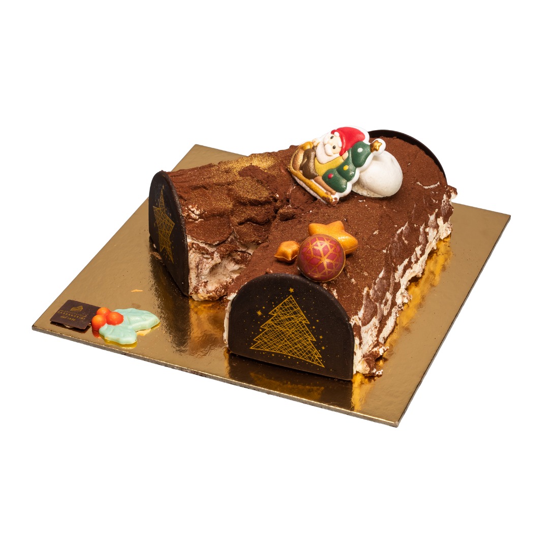 (DISPONIBILE DALL'8 AL 24 DICEMBRE) - Morbido biscuit al cacao farcito con crema diplomatica e amarene, coperto da un velo di cacao e decorato con soggetti in zucchero e cioccolato (per 10 persone) - 950 gr.