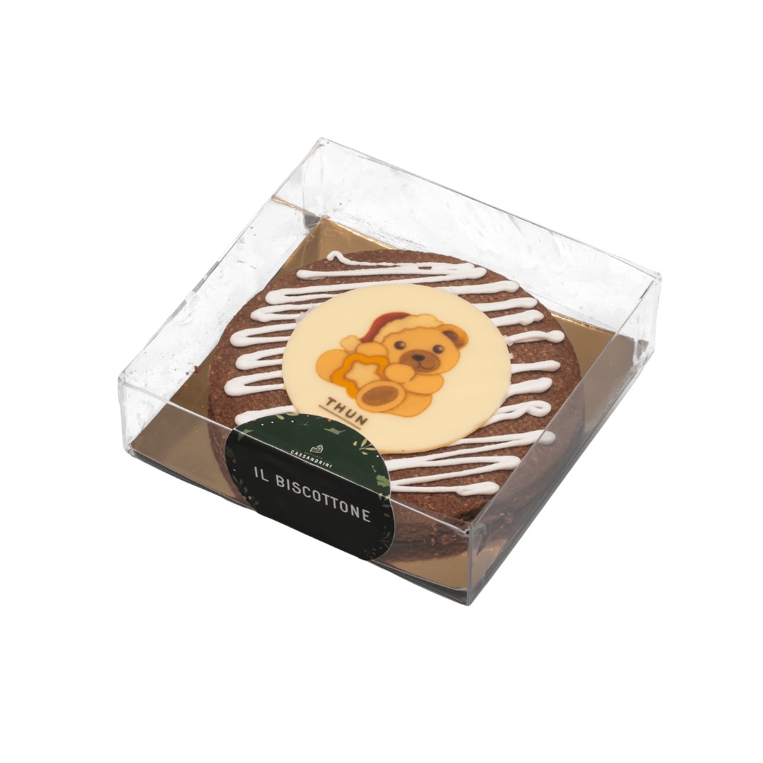 Il Biscottone di frolla al cacao e medaglione al cioccolato bianco Thun