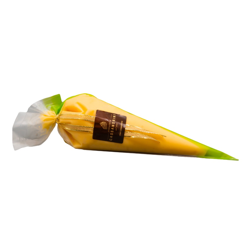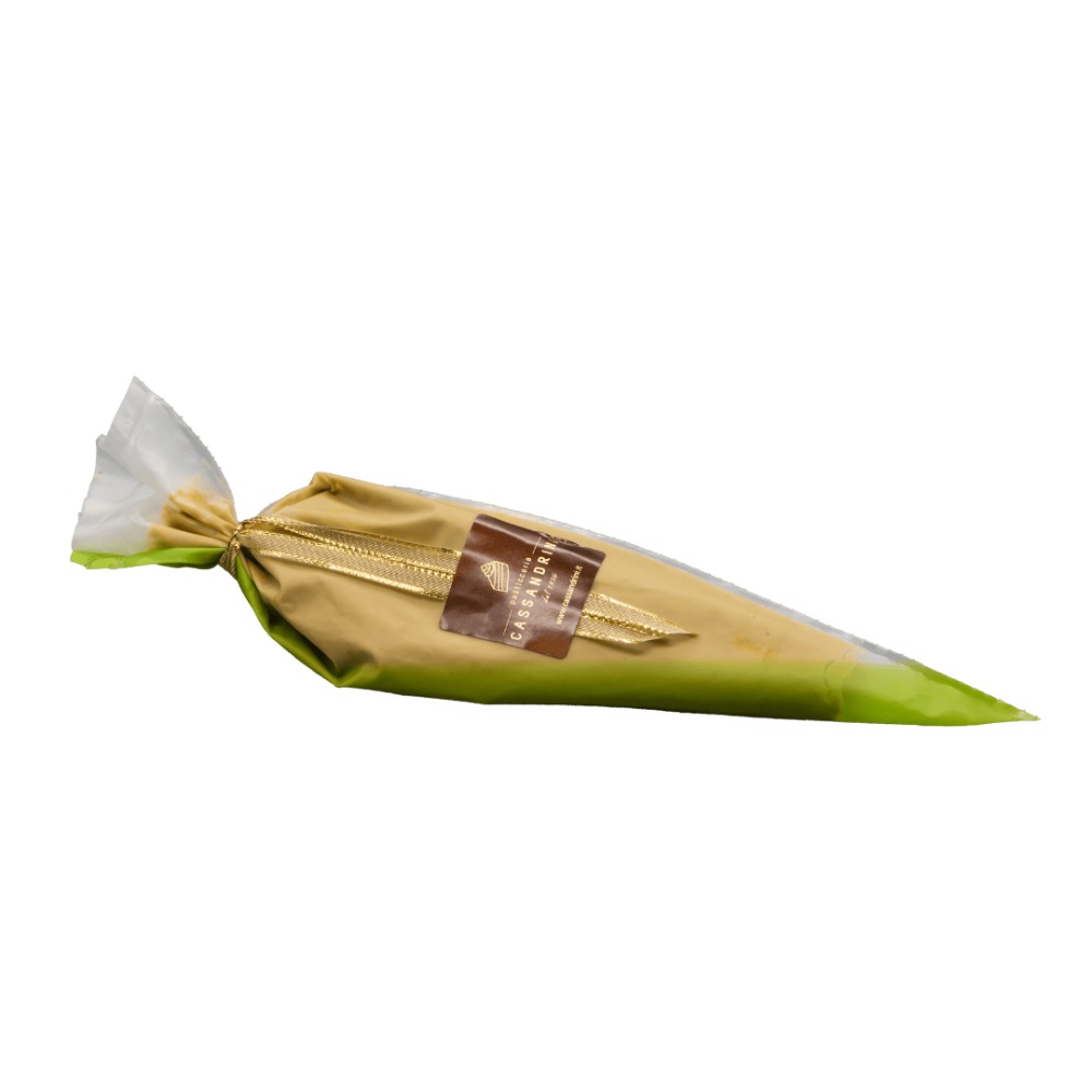 Impasto tradizionale arricchito amarene in frutto all’interno, da granella di pistacchio all’esterno e pronto da farcire con sac a poche di crema al pistacchio Dubai con pasta Kataifi